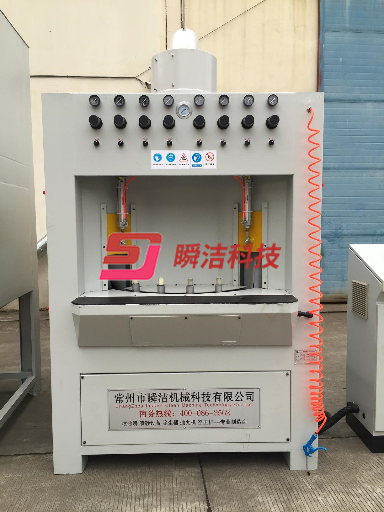 3、 大轉(zhuǎn)盤連續(xù)轉(zhuǎn)動,無極變頻可調(diào),根據(jù)客戶噴砂要求,自行調(diào)整。
