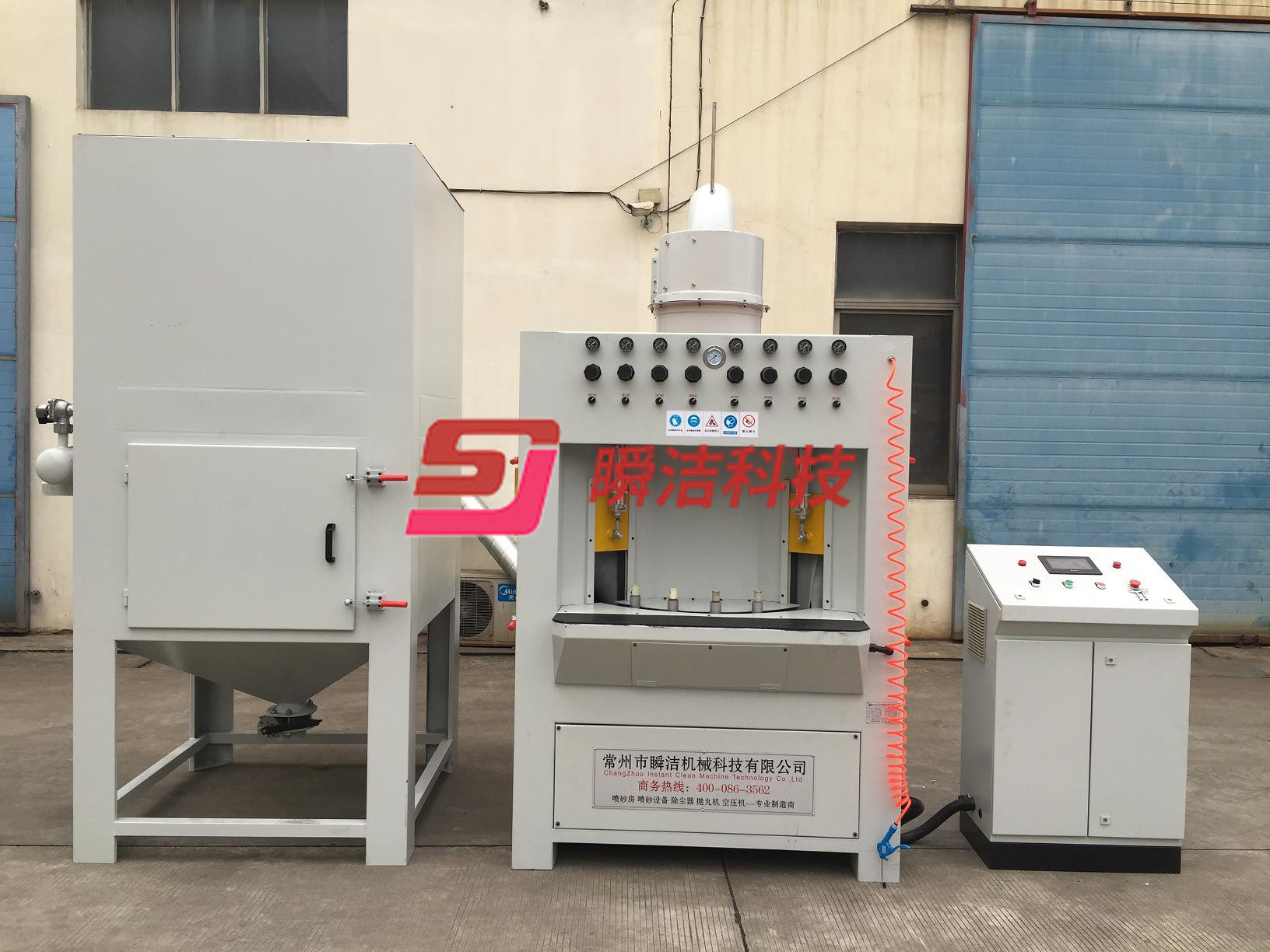 5、 本設(shè)備采用觸摸屏設(shè)計,自動化程度高,PLC程序化控制,設(shè)有互鎖裝置、報警裝置、磨料檢查裝置、等。