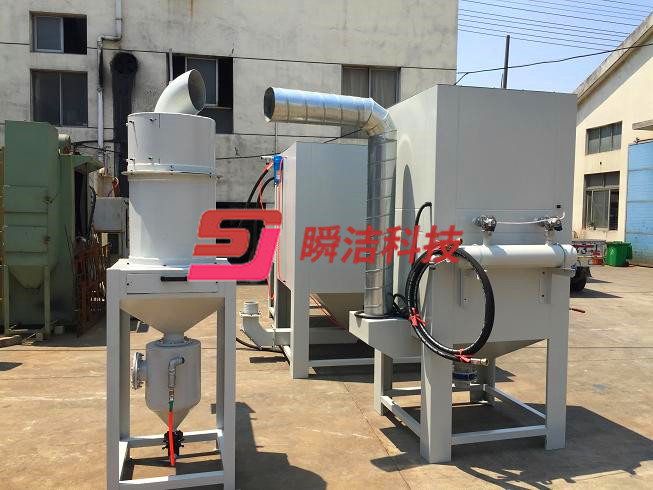 該設備由噴砂主機、臺車支架、移動臺車、自動轉盤、分離器、除塵箱、電控箱、電氣控制系統等組成。