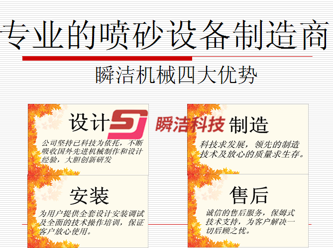 2、不需要另外配備通風(fēng)除塵設(shè)備和單獨(dú)的噴砂間,可直接安裝在生產(chǎn)線上,節(jié)省生產(chǎn)面積,